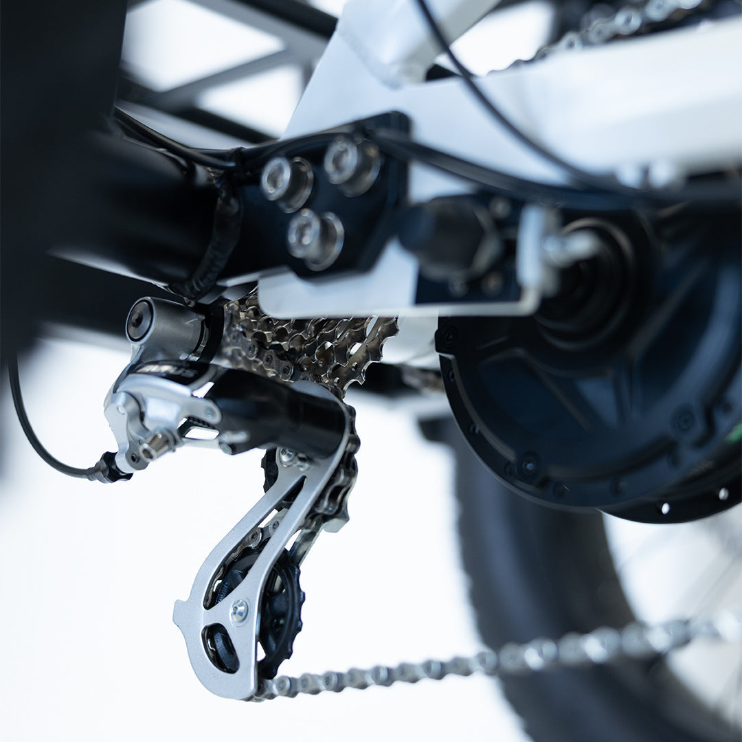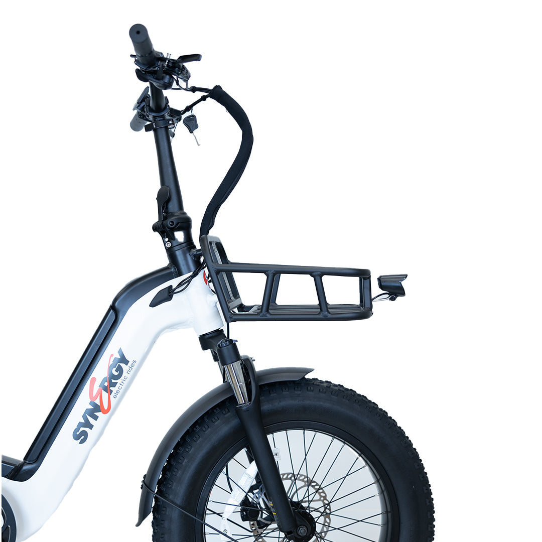 The Triad's extraordinary range ensures you can explore further and faster than ever before. Equipped with a 48V 15Ah Li-iron Samsung Battery, you'll enjoy uninterrupted adventures for miles on end. Experience the epitome of convenience with the Synergy Triad, complete with a font basket, rear cargo baskets, HD disc brakes, and a sturdy aluminum frame, all in a sleek finish.