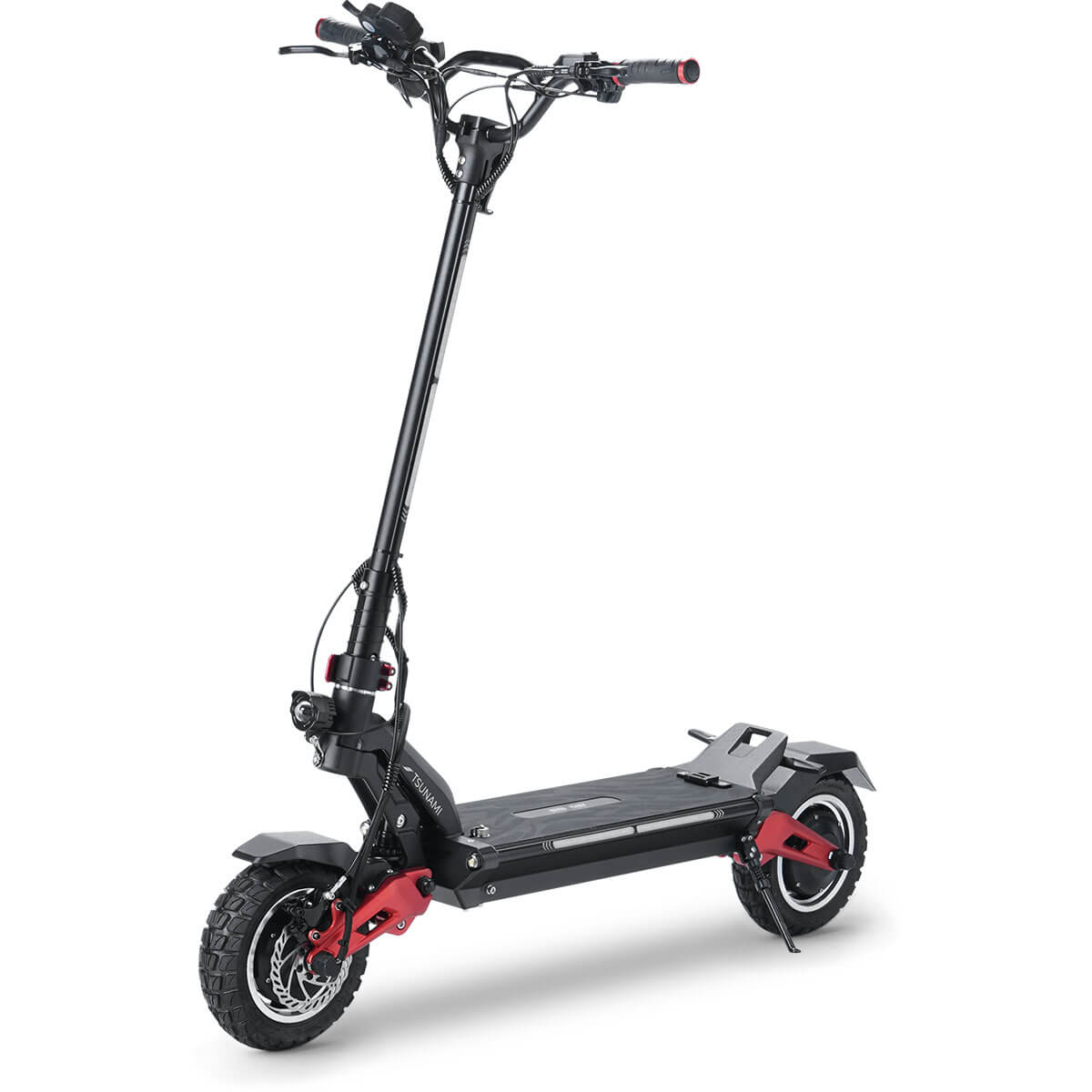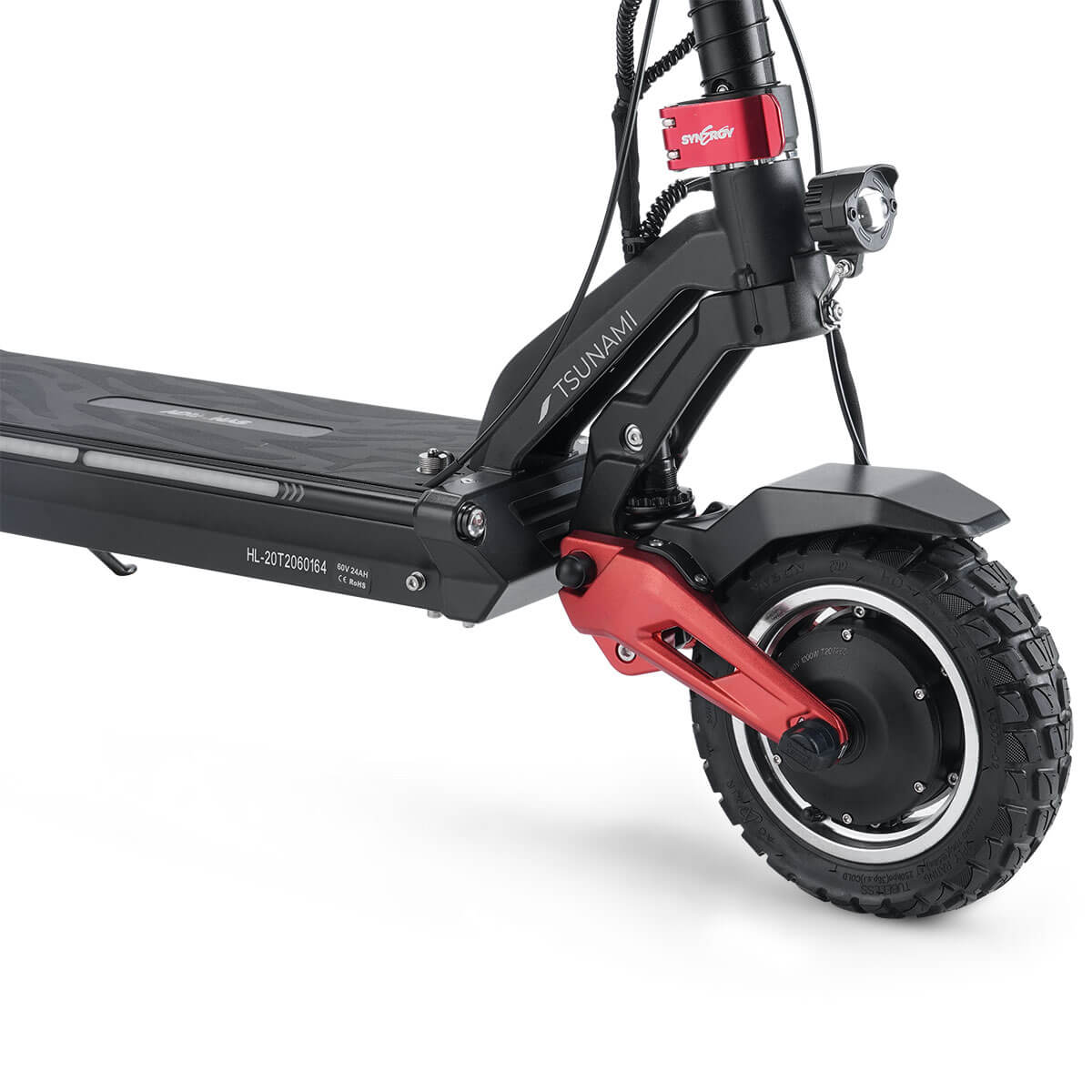 Synergy Tsunami Dual 1200W (2400W total) electric scooter—an unstoppable powerhouse that redefines urban mobility. Engineered with cutting-edge technology and precision craftsmanship, the Tsunami is equipped with innovative 10" tubeless offroad tires, ensuring unparalleled performance on any terrain.