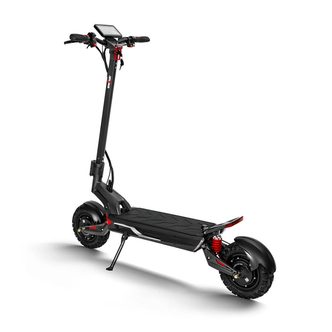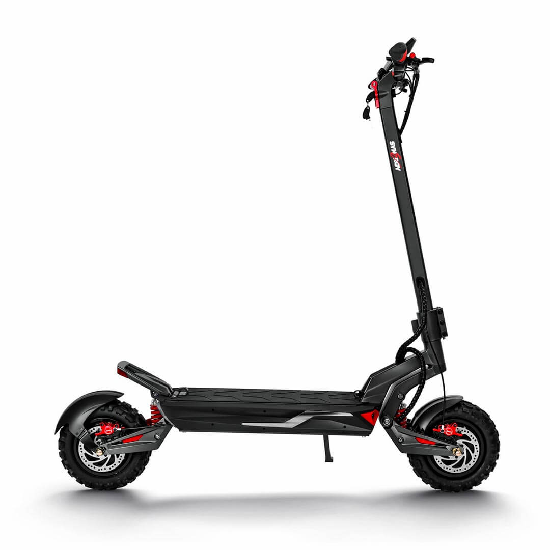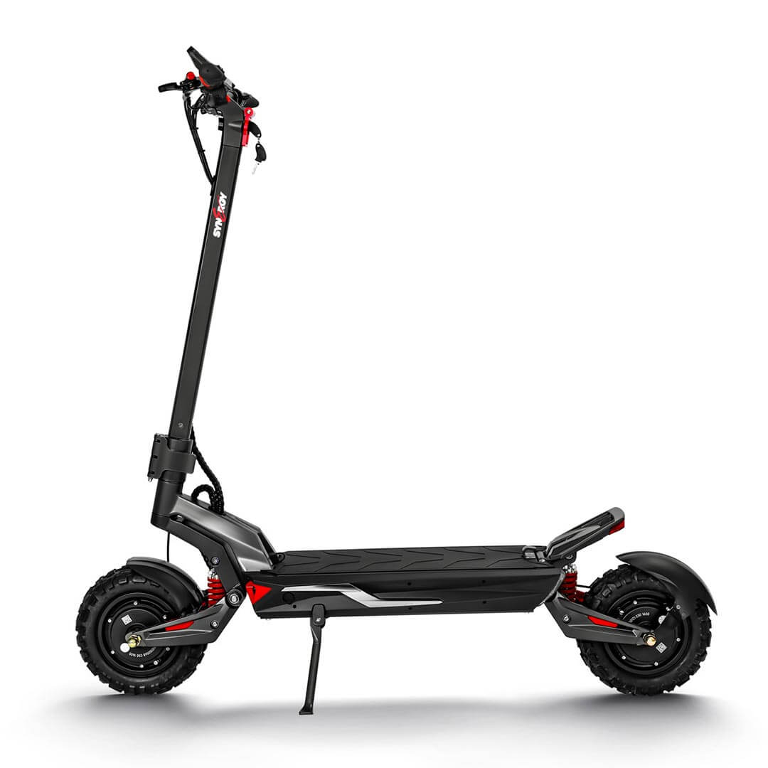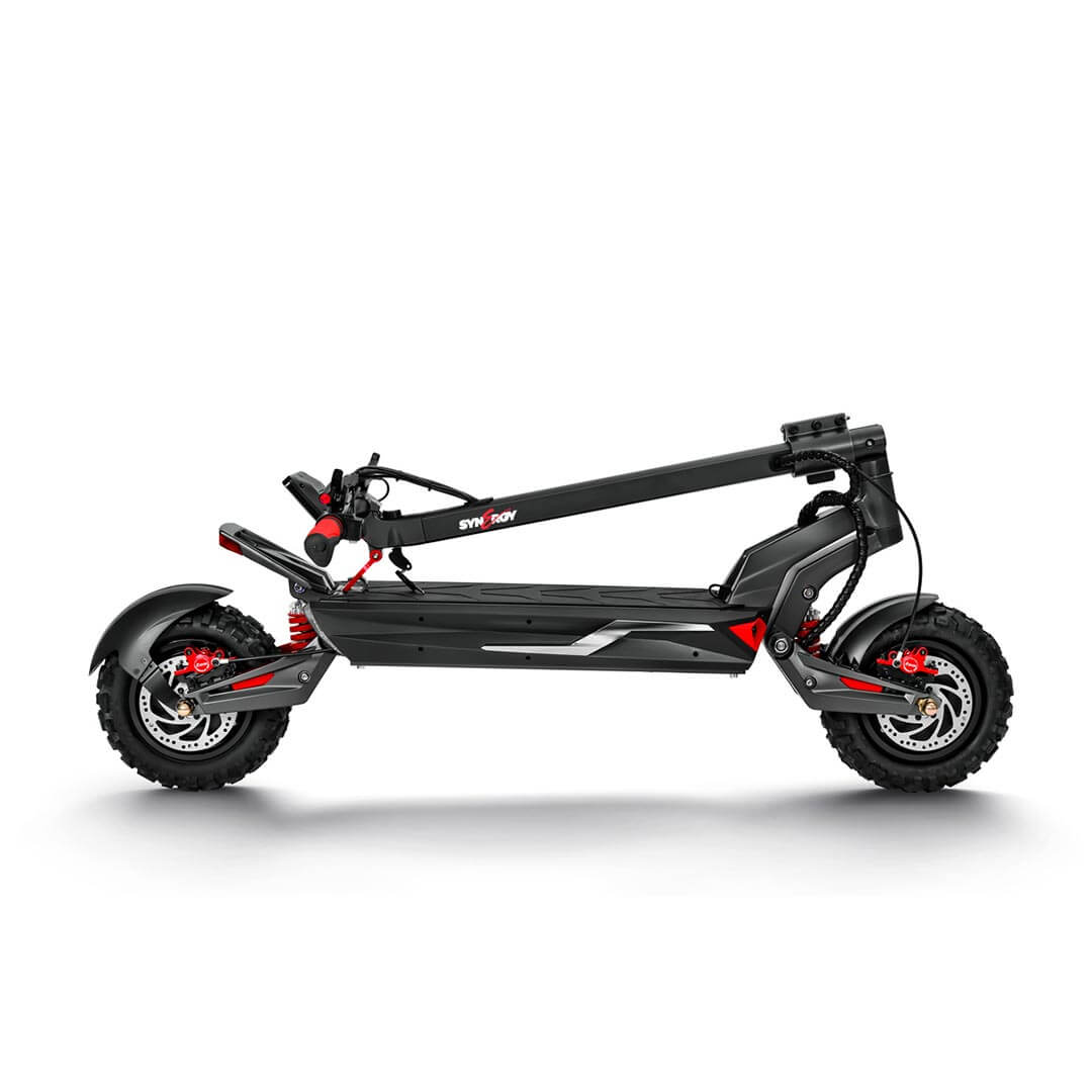 Experience the Synergy Storm eScooter standard with a robust 1200W dual motor and resilient aluminum alloy frame. Effortlessly conquer both city streets and off-road trails with the 11" tires and 10" deck. Its foldable design guarantees convenient storage and transportation, while the modular design enhances both aesthetics and anti-theft security of the full suspension Synergy Storm. Elevate your commute with the Synergy Storm - where style seamlessly merges with unparalleled performance.